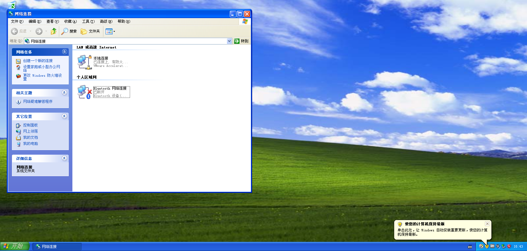 右键桌面「网上邻居」→「属性」,找到虚拟机的网卡「本地连接」(通常为 “VMware Accelerated AMD PCNet Adapter” 对应的连接)。