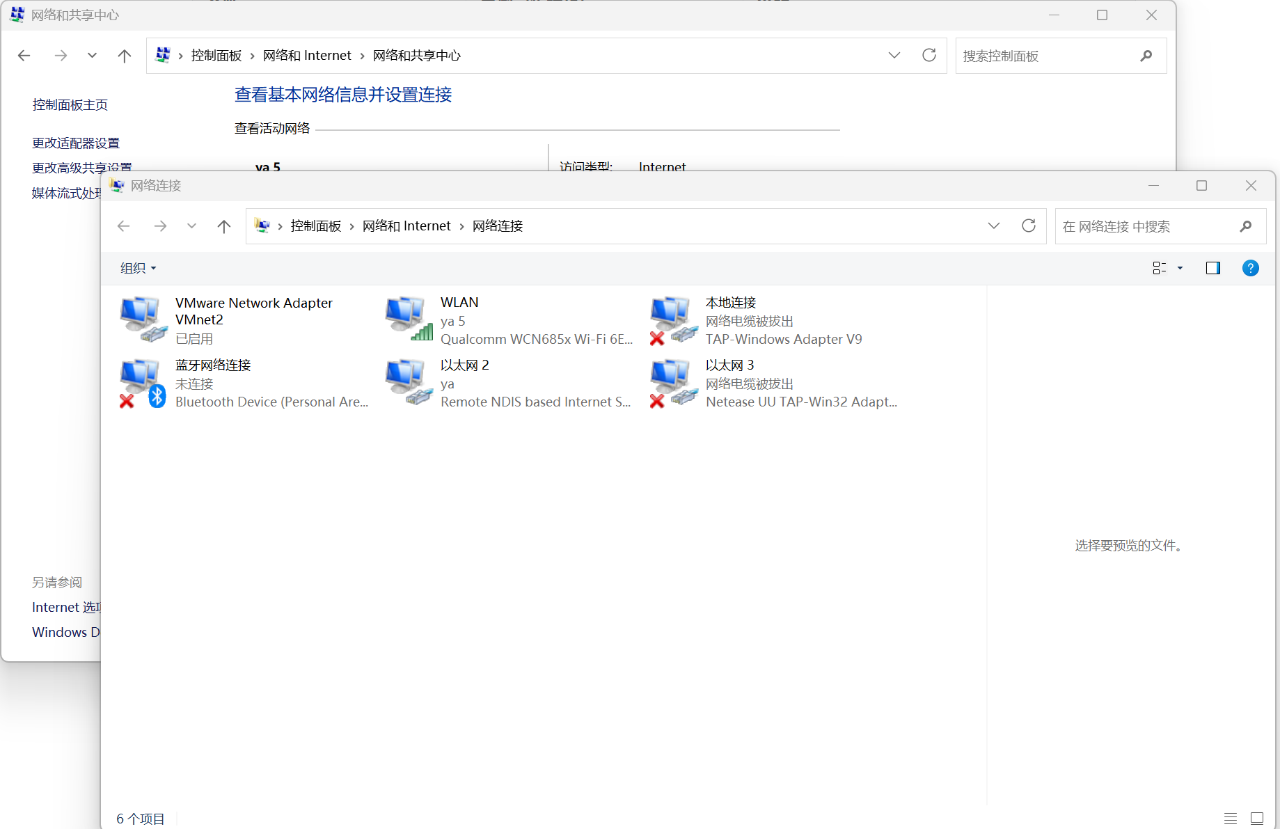 - 物理机打开「控制面板」→「网络和共享中心」→「更改适配器设置」,找到名为 “VMware Network Adapter VMnet2” 的网卡(即 VMnet2 对应的物理机虚拟网卡)。