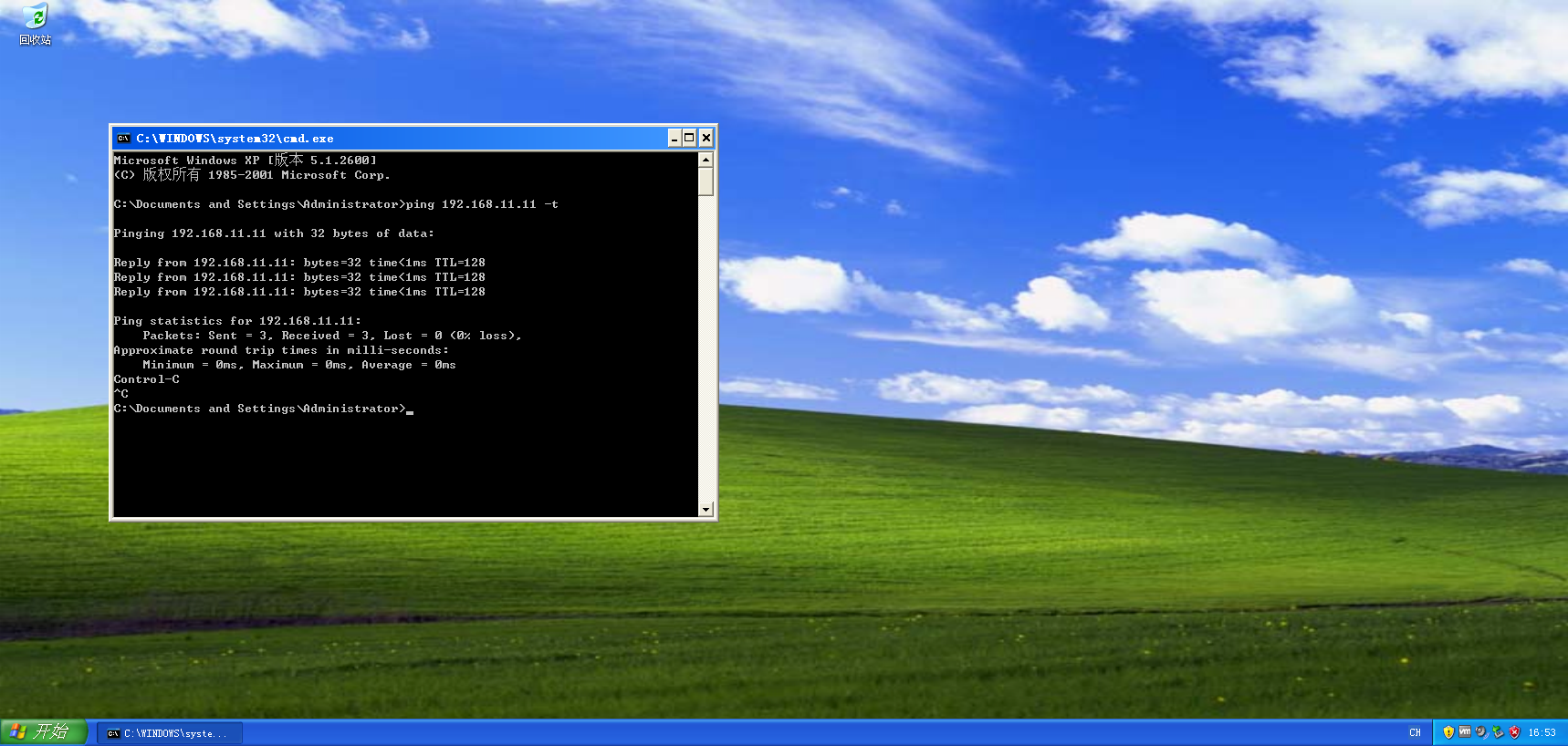 - 输入命令: ping 192.168.11.11 -t 。